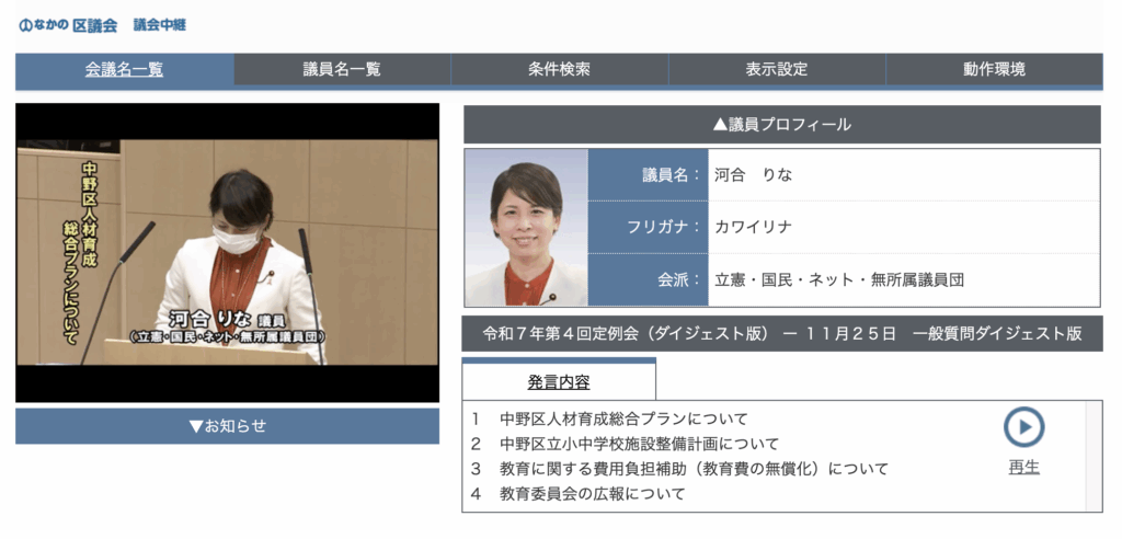 なかの区議会 議会中継(一般質問ダイジェスト版)